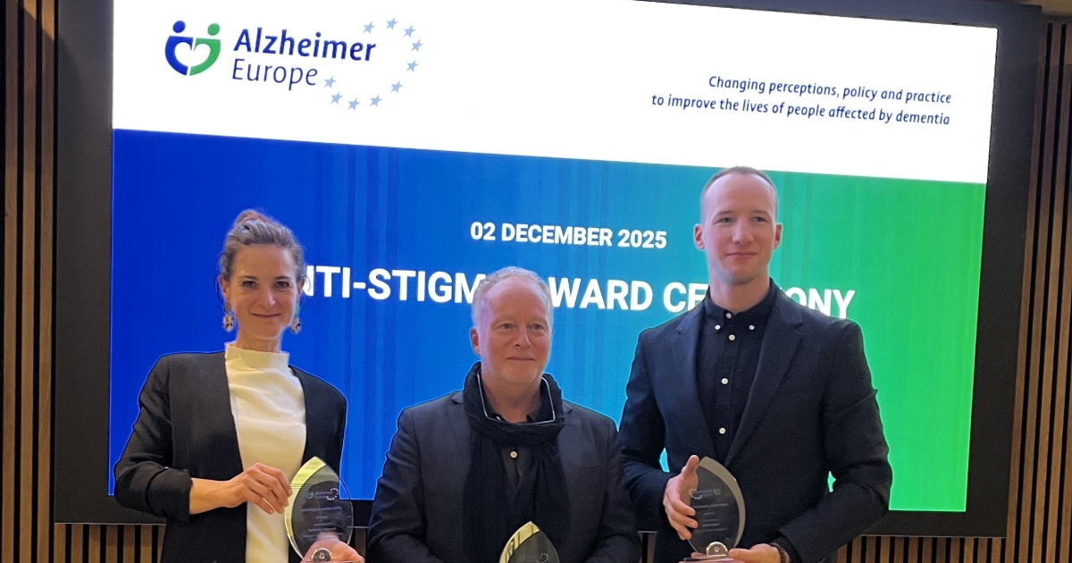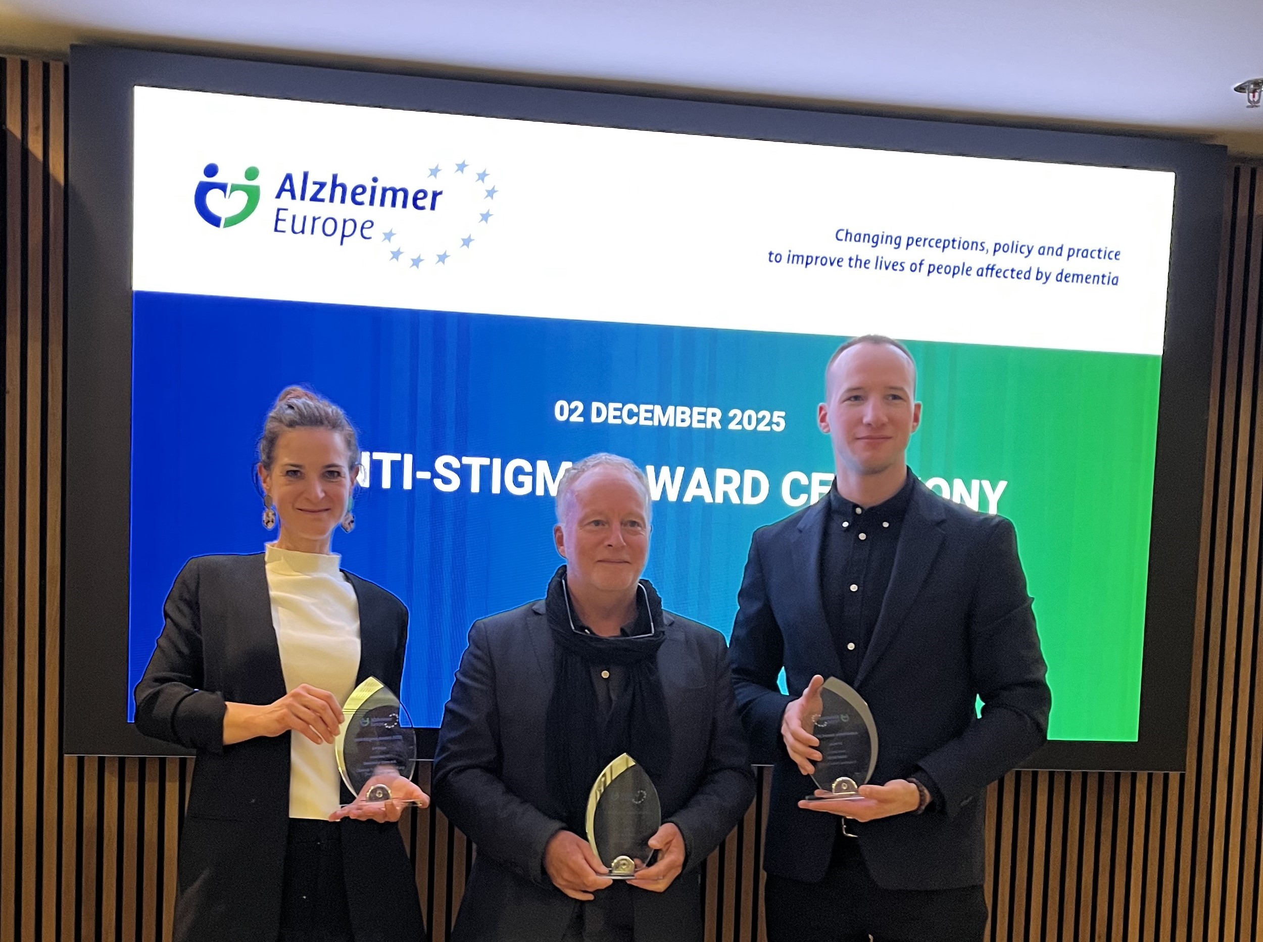 Foto Preisträger: Isabelle Henn (Desideria Care), Alex Kornhuber und Bálint Szajki. Fotocredit: Alzheimer Europe